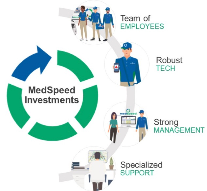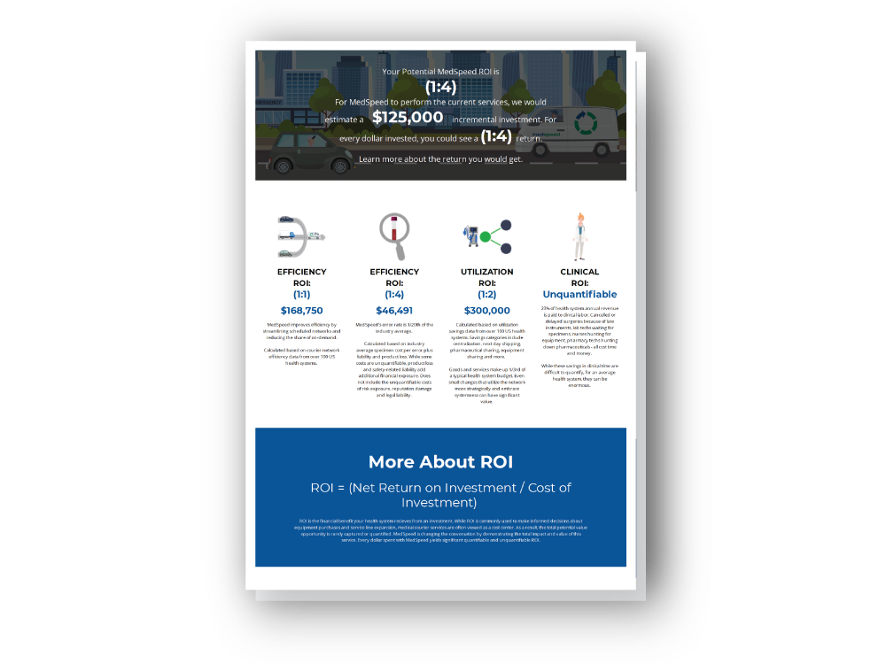 While that means it may cost more for MedSpeed to drive around the block than a general courier, we drive around the block fewer times, and our customers experience a significant ROI.